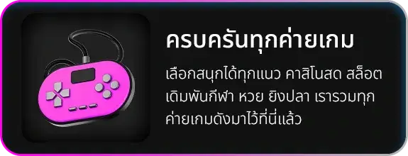 ตอบ : มีคาสิโนสด สล็อต กีฬา เกมไพ่ บาคาร่า รูเล็ต และหวยออนไลน์ครบวงจร พร้อมระบบฝาก-ถอนอัตโนมัติตลอด 24 ชั่วโมง
